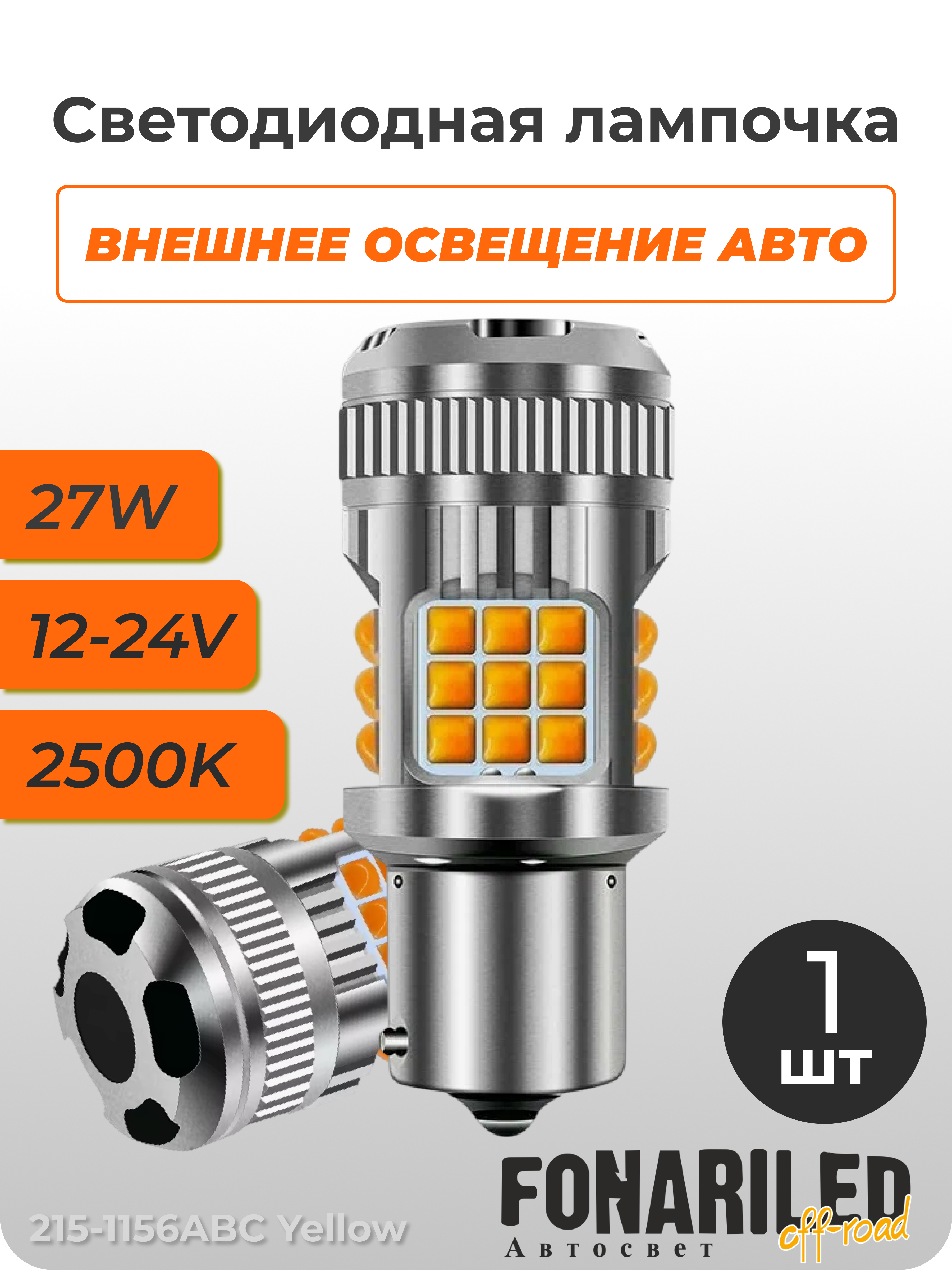 Светодиодная лампочка 215-1156ABC Yellow представляет собой мощное решение для автомобильного освещения, генерируя яркое оранжевое свечение с впечатляющим световым потоком в 1500 Люмен. Благодаря углу света в 360 градусов, она обеспечивает равномерное и всенаправленное освещение, исключая темные участки. Эта лампа, предназначенная для цоколя 1156, потребляет 27 Ватт, что делает ее эффективной заменой традиционным источникам света.