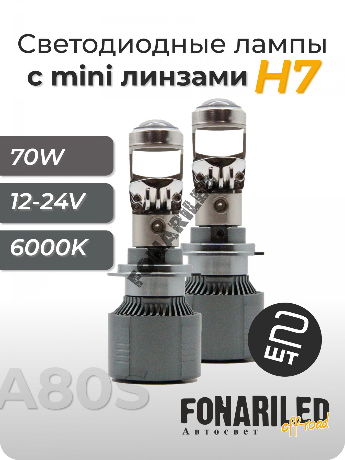 - Светодиодные мини линзы, автомобильные линзованные лампы H7 серия A80S-H7AB