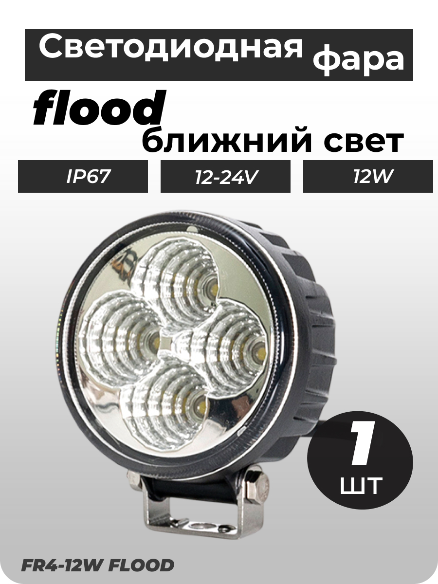 - Светодиодная фара FR4-12W flood ближний, рабочий свет