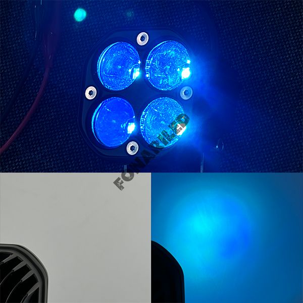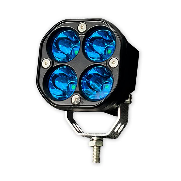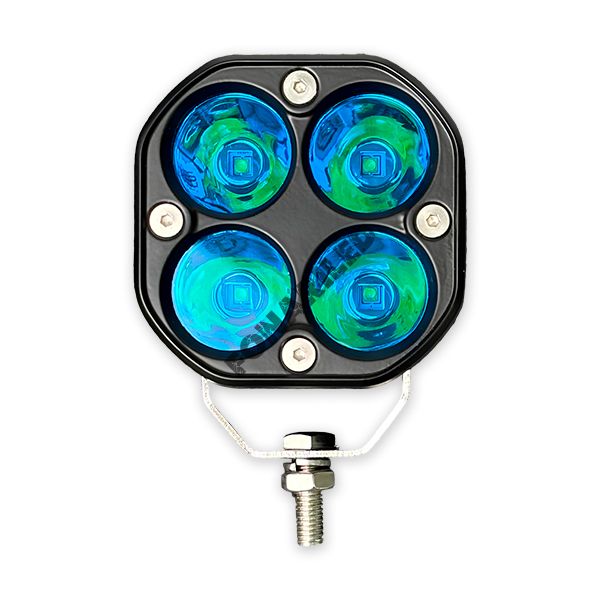FR4B светодиодная фара с дальним направленным синем освещением. Мощность лампы 40 Ватт, бьет четырьмя яркими и мощными лучами, которые сливаются в рассеянное пятно света. Предназначена для работы с сельхоз техникой (например, с опрыскивателями) или может использоваться в качестве дополнительного источника света и повышения видимости в темноте или в плохих условиях.
