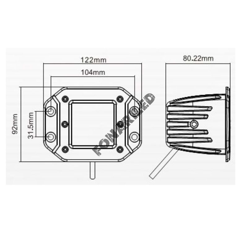 Габариты врезной фары составляют 122 мм в ширину, 92 мм в высоту и 80 мм в толщину, что делает фару компактной и удобной для монтажа.