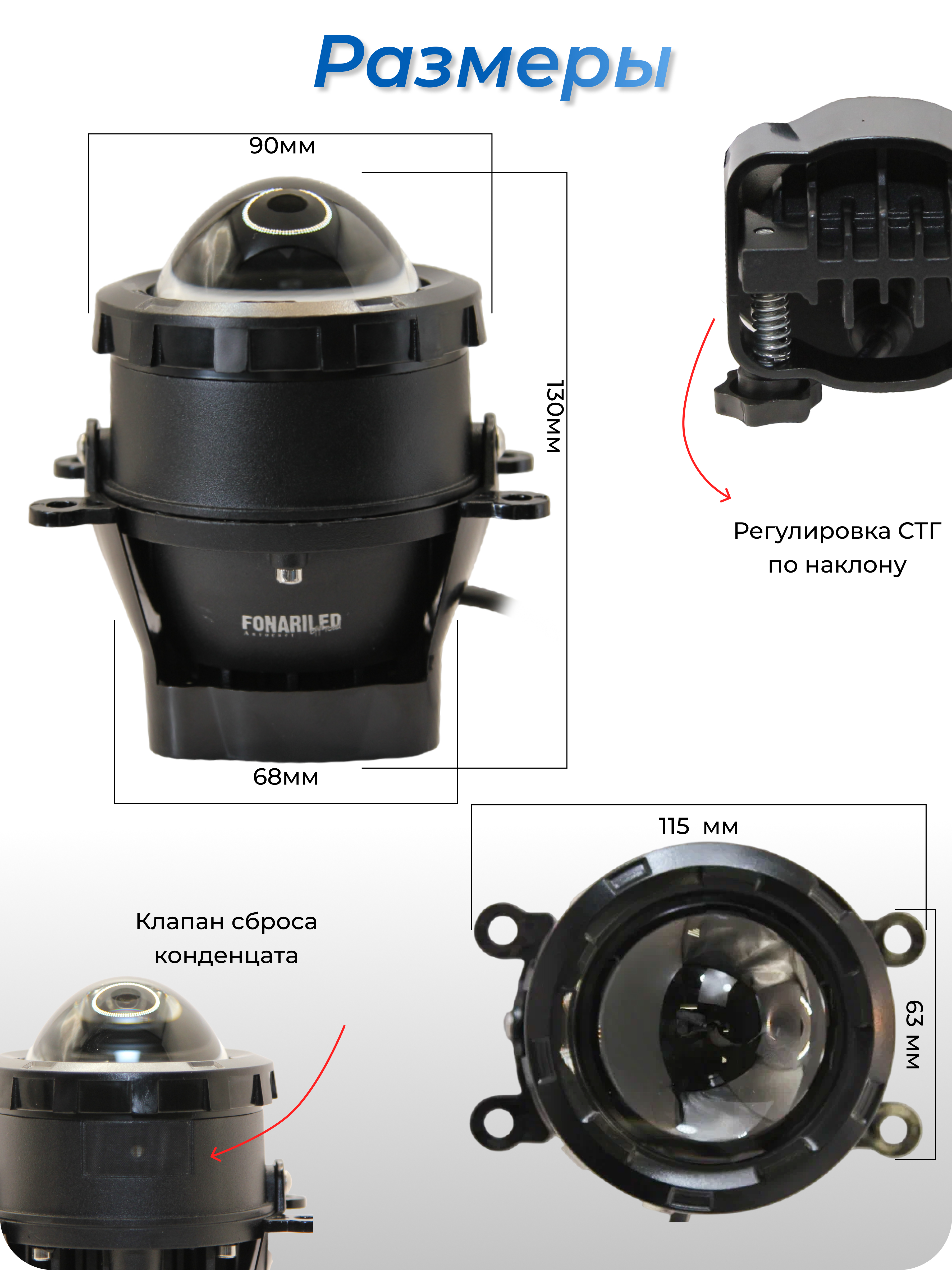 Черный цвет корпуса фар гармонично вписывается в дизайн большинства автомобилей, придавая им более современный и агрессивный вид. Компактные размеры (длина 126 мм, ширина 84 мм) и 3-дюймовый размер линзы позволяют легко установить их в штатные места противотуманных фар.