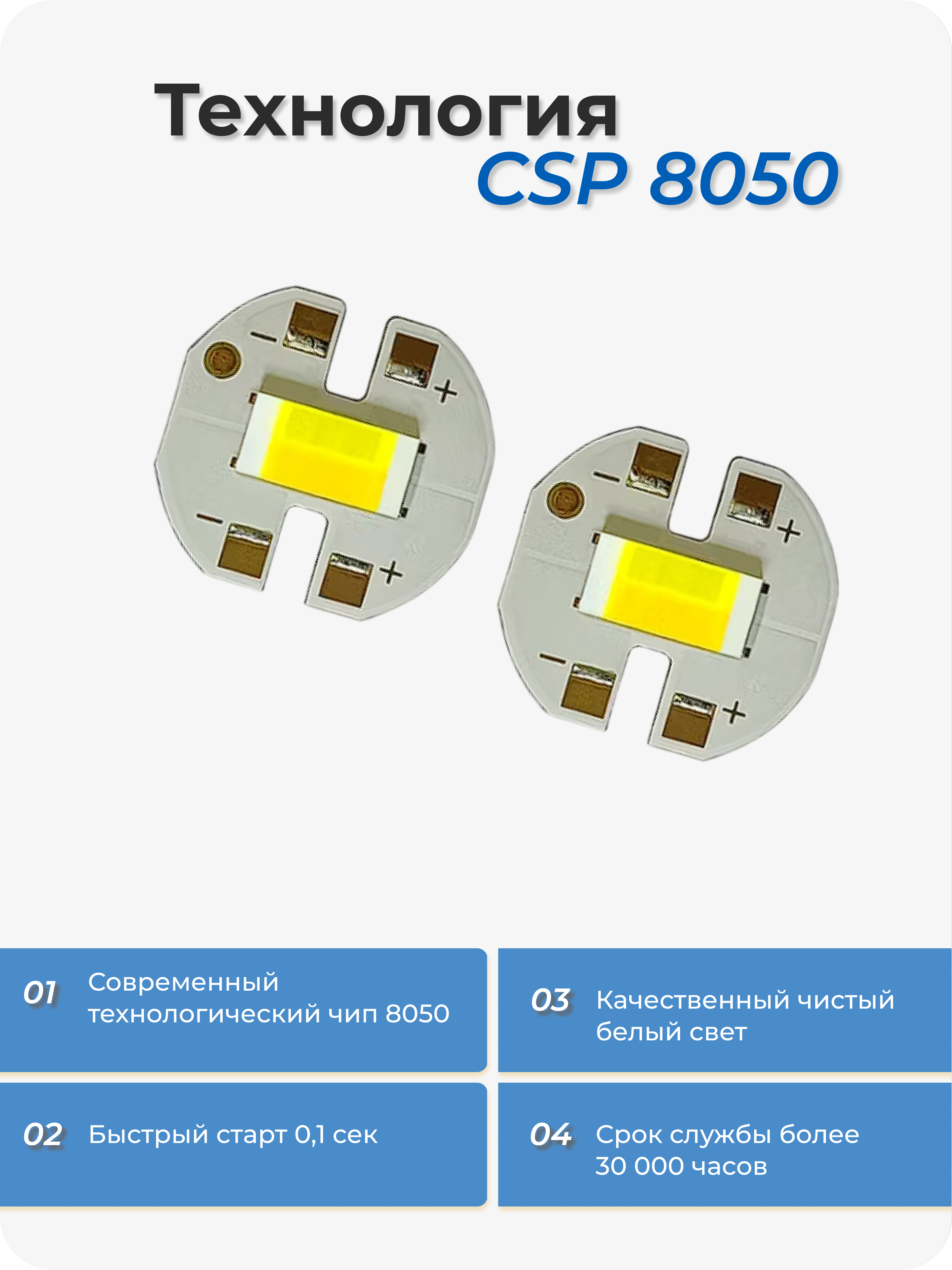 Уникальная особенность BI-LED фар – это возможность одновременного использования ближнего и дальнего света. Ближний свет с широким углом в 120 градусов эффективно освещает обочину и прилегающую территорию, в то время как дальний свет с углом в 30 градусов обеспечивает отличную видимость на большом расстоянии. Это создает четкую границу света, минимизируя ослепление встречного транспорта и улучшая общую картину дорожного движения.