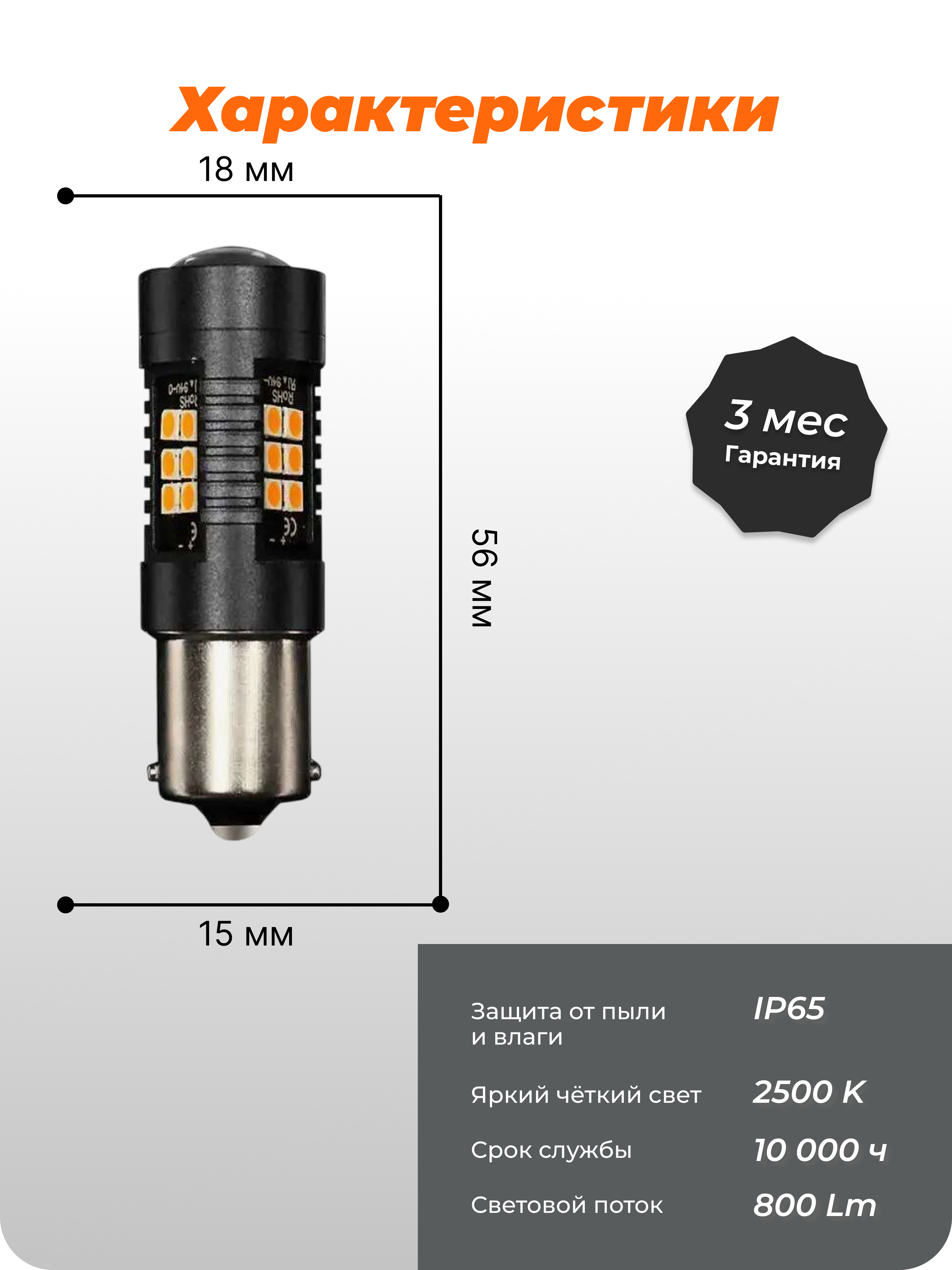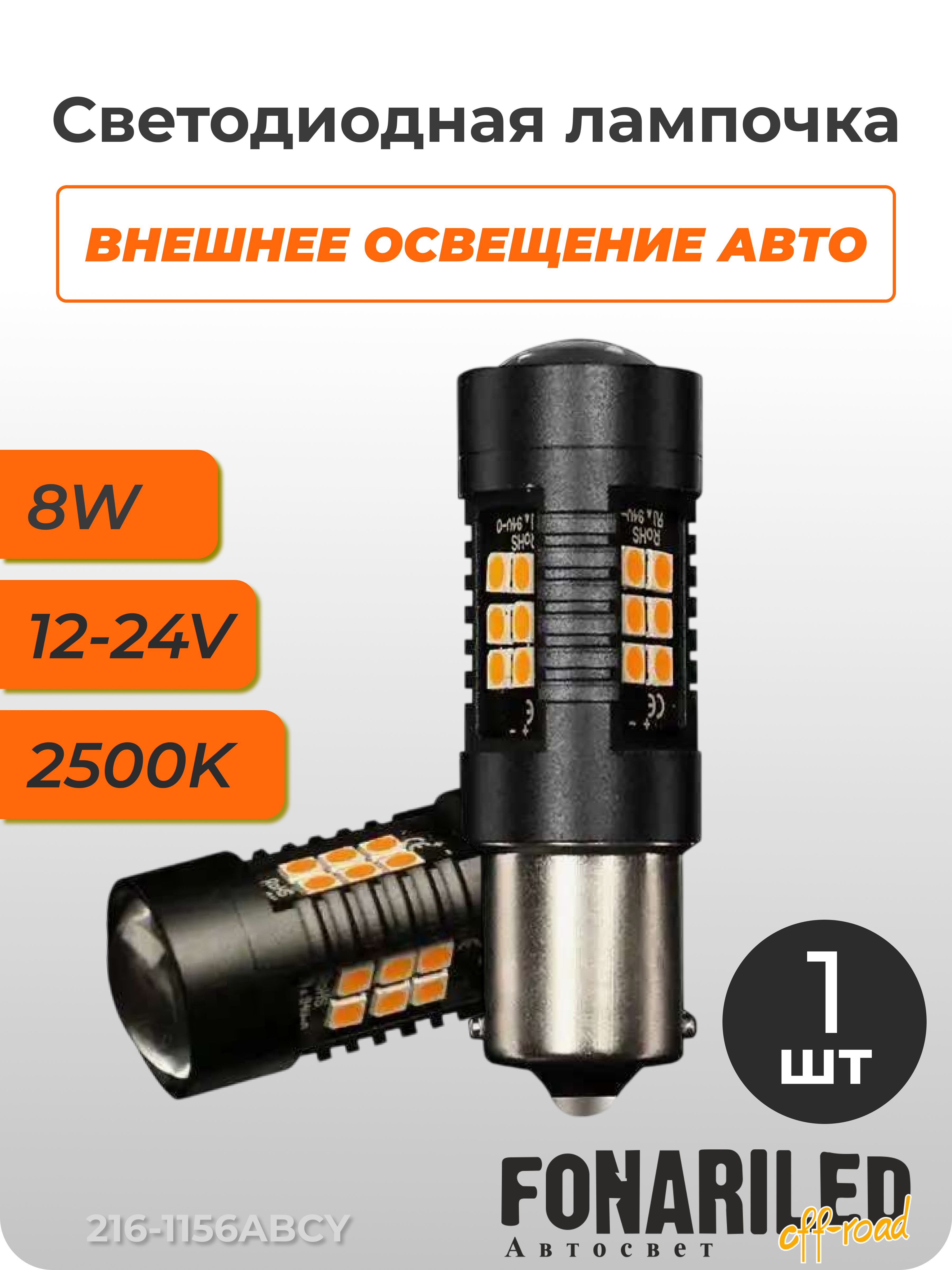 Желтая светодиодная лампочка с линзой 216-1156ABPY — это высокоэффективное решение для внешнего автомобильного освещения, обеспечивающее яркий и сфокусированный желтый свет. Световой поток в 800 Люмен и температура света 2500K гарантируют отличную видимость и узнаваемость. Особенностью данной модели является интегрированная стеклянная линза, которая дополнительно оптимизирует распределение света, при этом сохраняя широкий угол освещения в 360 градусов. Потребляя всего 8 Ватт мощности, эта лампа с цоколем 1156 является энергоэффективной и мощной заменой стандартным лампам.