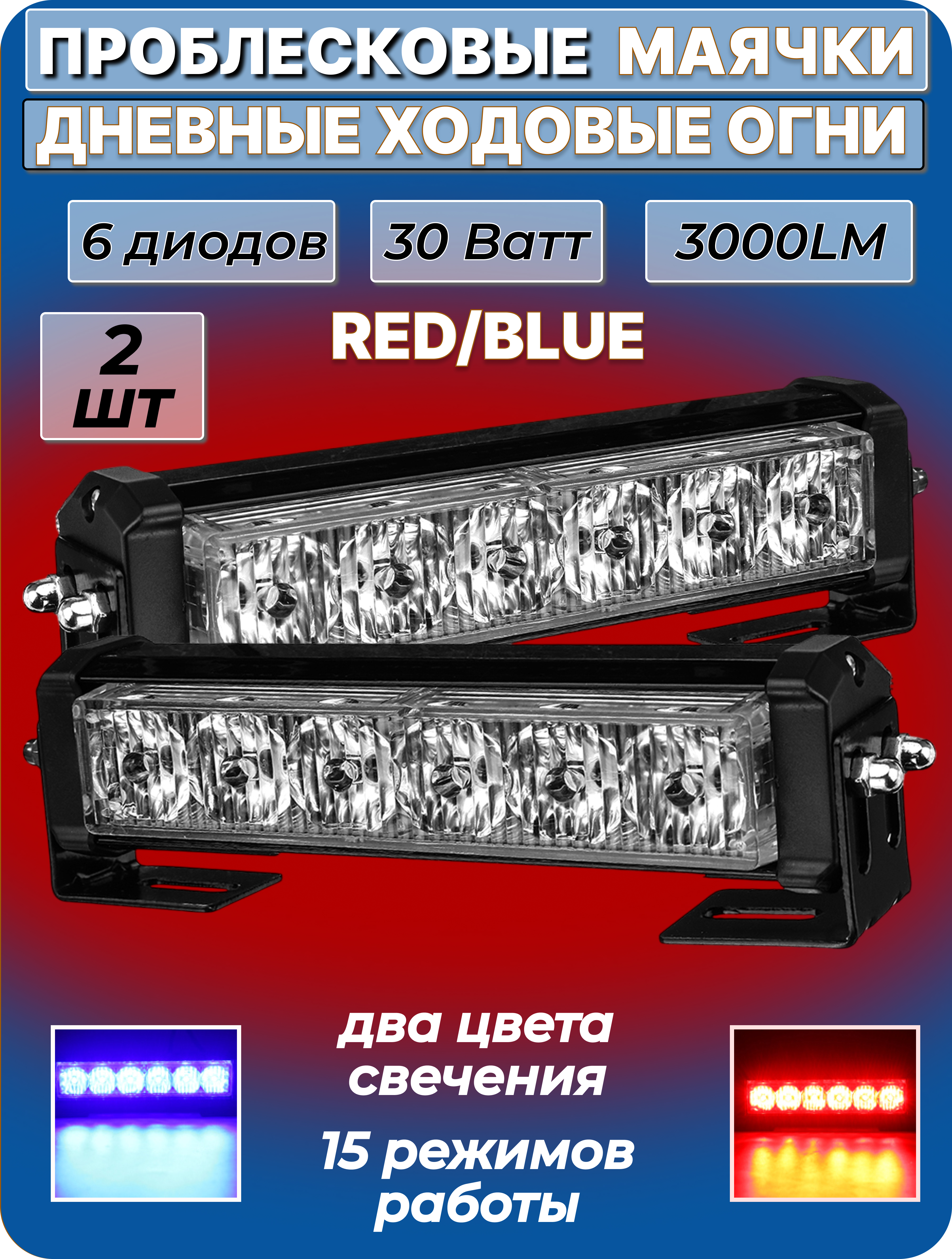 Представляем комплект красно-синих дневных ходовых огней (ДХО) DRB-246, созданных для установки под решетку радиатора и обеспечивающих яркое и заметное освещение. Каждый из четырех огней в комплекте оснащен передовой технологией COB (Chip On Board), что гарантирует высокую эффективность и равномерное распределение света. Суммарная мощность комплекта составляет 30 Ватт, а общий световой поток достигает 3000 Люмен, делая ваш автомобиль более заметным и повышая безопасность дорожного движения, особенно в условиях ограниченной видимости.
