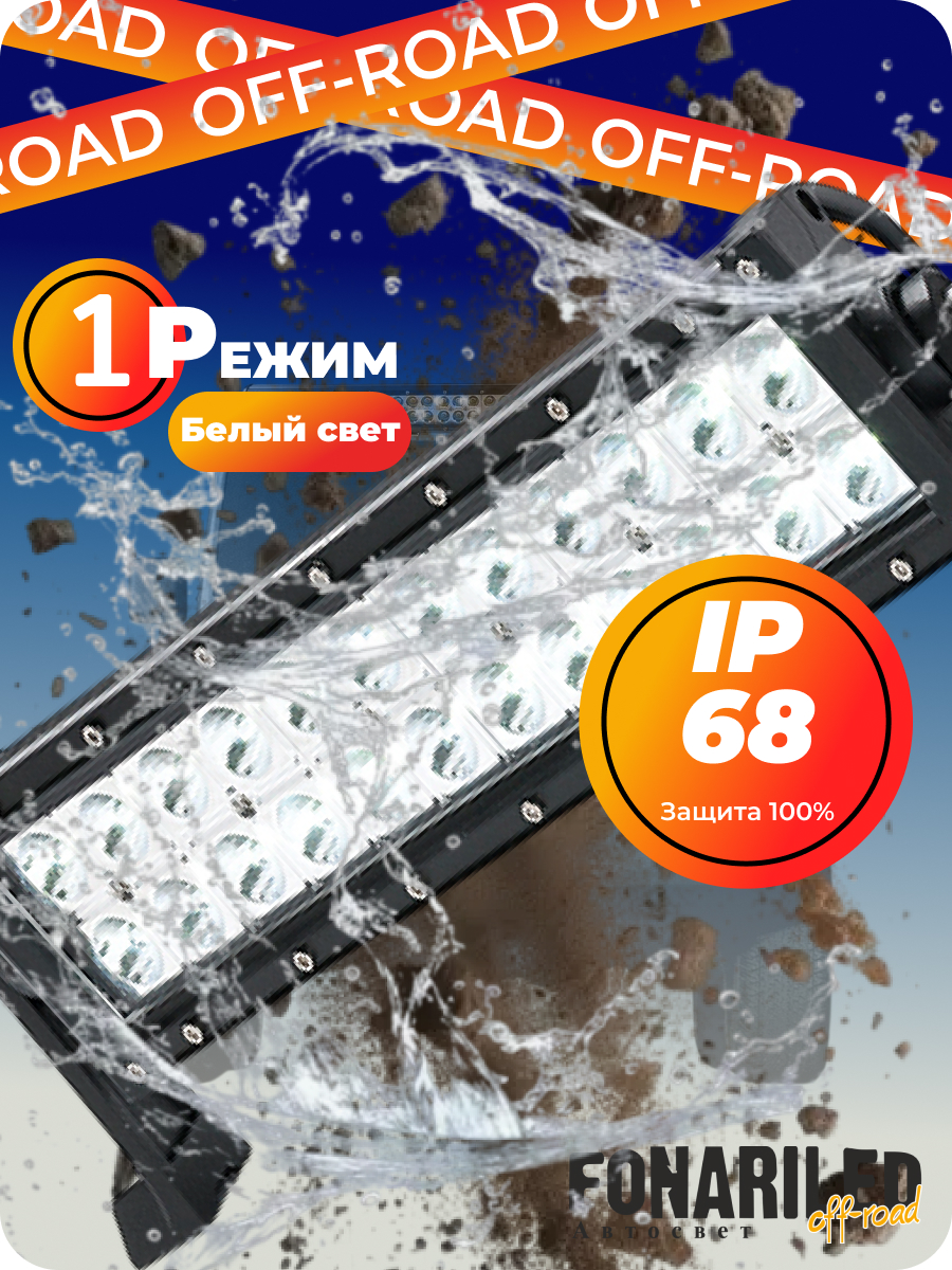 Надежность конструкции подтверждена высокими стандартами защиты. Класс пыле- и влагозащиты IP67 гарантирует полную герметичность внутренних компонентов при работе под проливным дождем или в условиях сильной запыленности. Литой алюминиевый корпус отличается превосходной виброустойчивостью (15,6 Grms), что позволяет использовать балку на технике, постоянно подвергающейся тряске, а широкий температурный диапазон от -40° С до +80° С обеспечивает стабильную работу в любом климате.