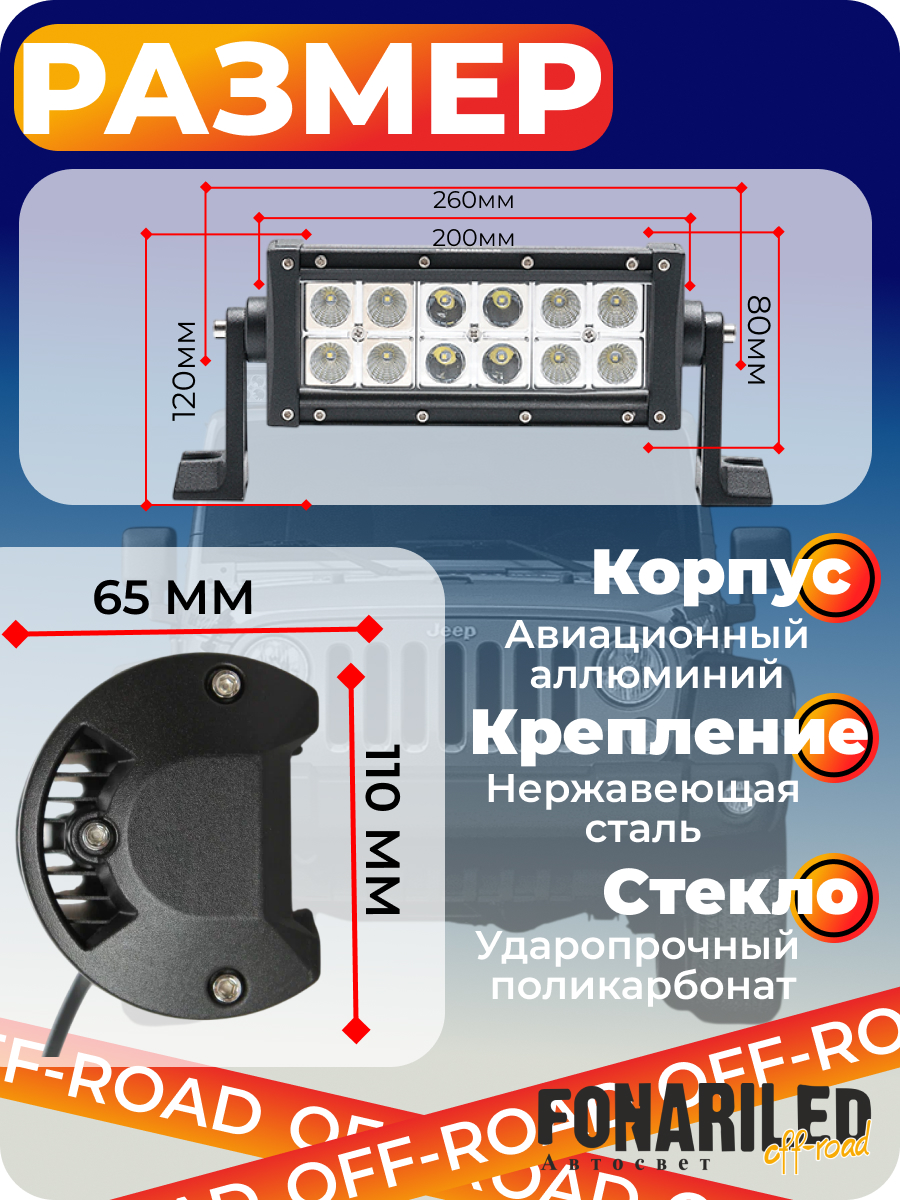 Светодиодная балка DB-36W Spot — это самое компактное и эффективное решение в линейке, идеально подходящее для тех, кому требуется дополнительный источник света при минимальных габаритах. Длина корпуса составляет всего 20 см (8 дюймов), что позволяет легко интегрировать её в решетку радиатора, установить на руль квадроцикла или закрепить на бампере малогабаритной техники. Черный матовый корпус из литого алюминия придает устройству эстетичный вид и обеспечивает необходимую прочность для работы в сложных условиях.