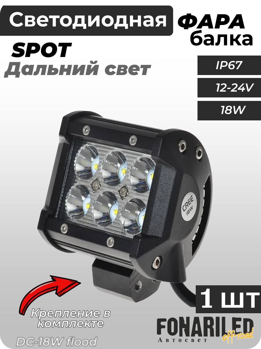Современная фара светодиодная 12в 18 ватт представляет собой компактный и мощный led прожектор 12v, разработанный для обеспечения качественного освещения в самых сложных условиях. Эта универсальная светодиодная балка работает в широком диапазоне напряжения 12-24 Вольт, что позволяет устанавливать её на легковые автомобили, внедорожники и спецтехнику. Использование передовых американских диодов по технологии Cree XM-L обеспечивает прибору высокую эффективность при мощности 18 Ватт и внушительную продолжительность времени работы до 30 000 часов.