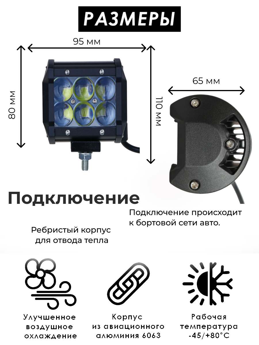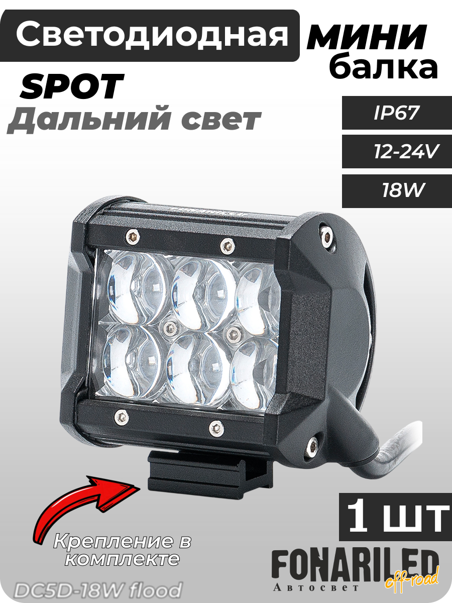 Оптическая часть устройства базируется на современных диодах, созданных по технологии Philips, что гарантирует высокую светоотдачу при умеренном энергопотреблении в 18 Ватт. Фара формирует мощный направленный поток дальнего света интенсивностью 1260 Люмен с цветовой температурой 6000K, обеспечивающей чистое белое свечение. Узкий угол света в 30 градусов позволяет сконцентрировать луч на значительном удалении от автомобиля, что делает эту модель незаменимой для безопасного передвижения по неосвещенным трассам и пересеченной местности в темное время суток.