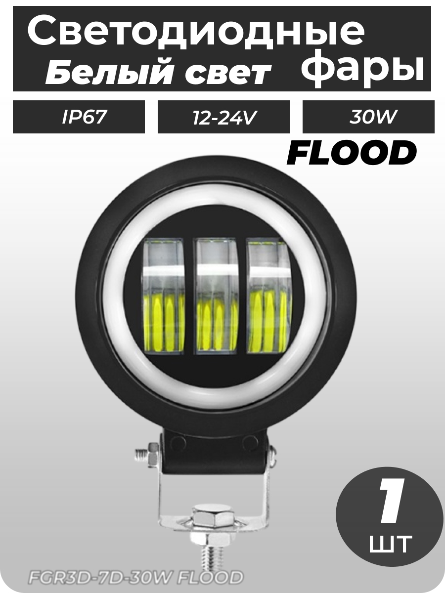 - Светодиодная фара 30 Ватт с границей света и дхо FGR3D-7D-30W FLOOD
