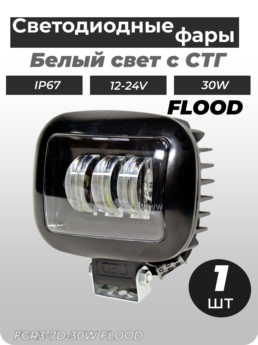 - Светодиодная 7D фара FG3-7D-30W flood ближний с границей света