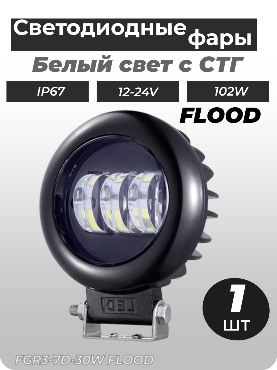 - Светодиодная 7D фара FGR3-7D-30W flood ближний с границей света