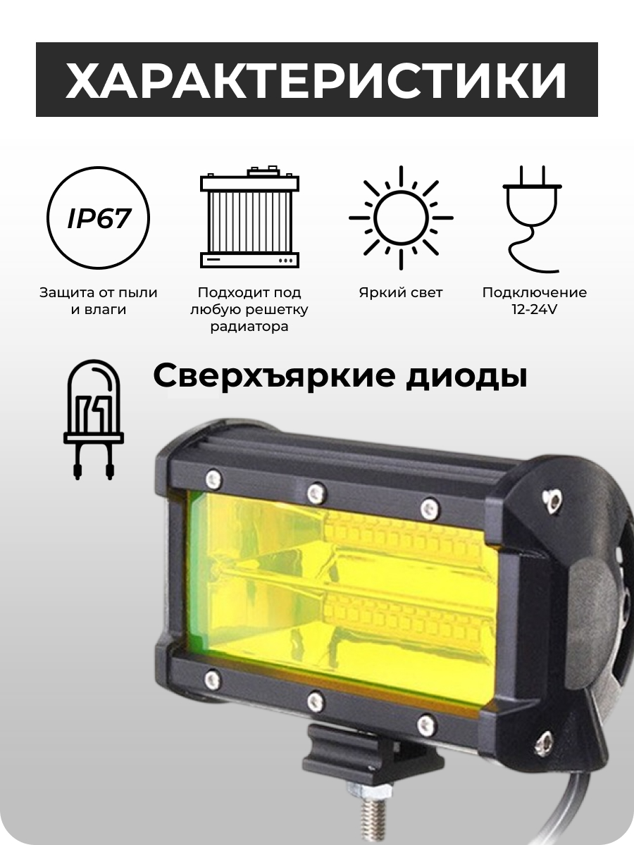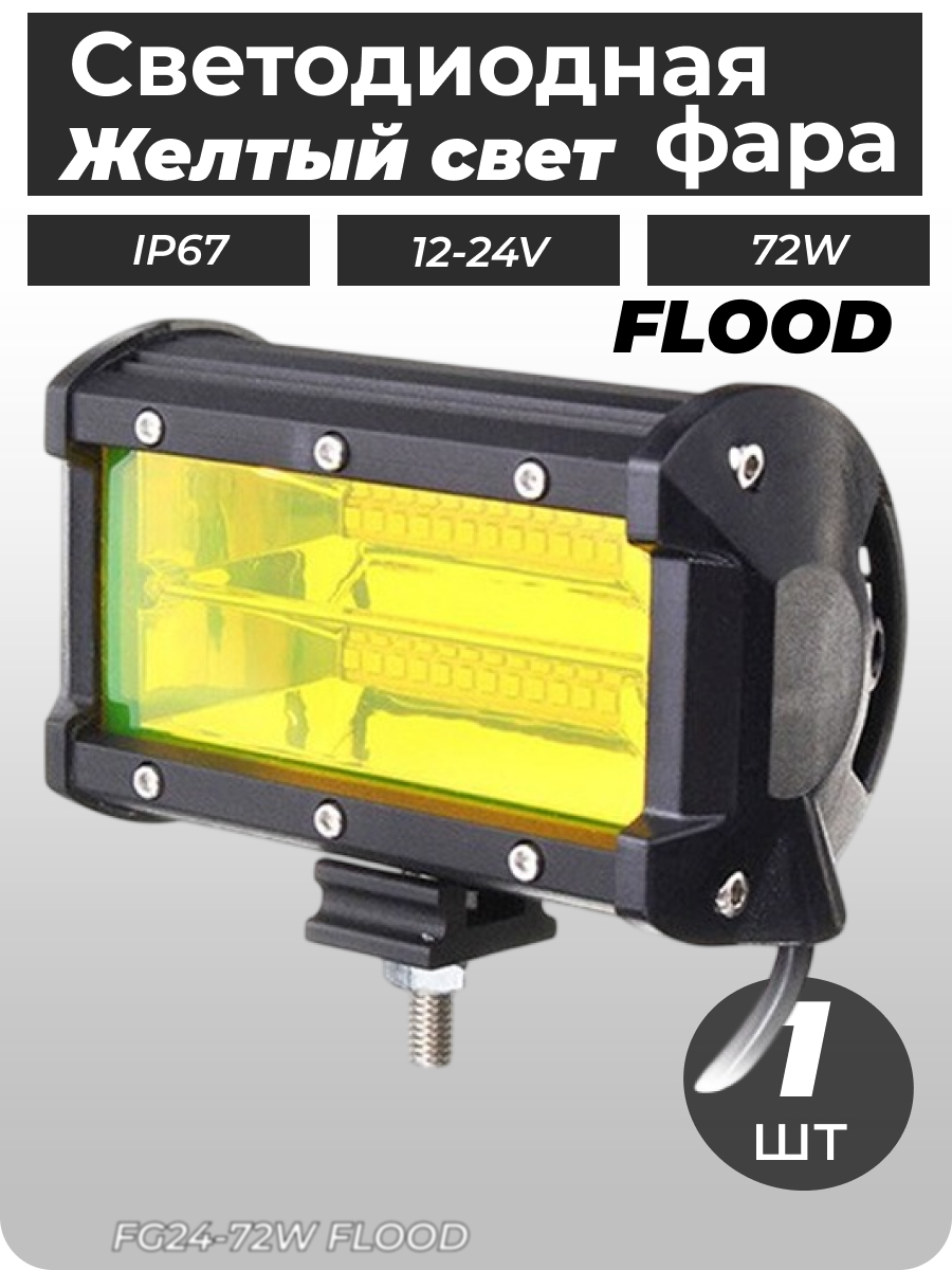 - Светодиодная желтая фара 72 ватт FGY24-72W flood с границей света