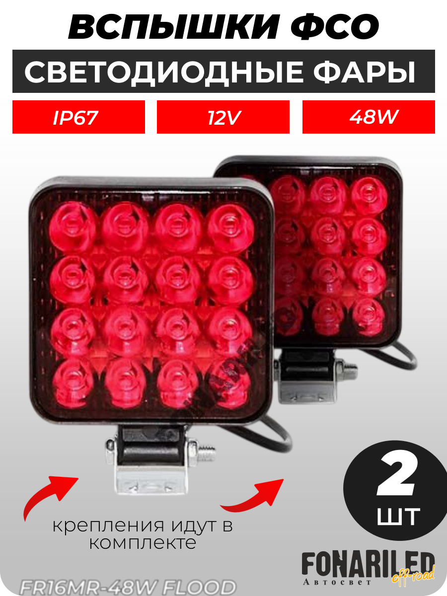 - Красные фары FR16MR-48W FLOOD светодиодный красный цвет
