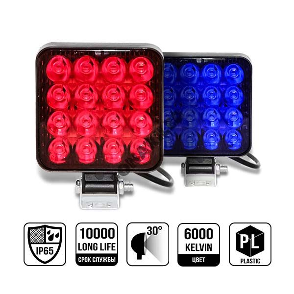 Светодиодная синяя красная фара FR16MBR-48W FLOOD синий / красный стробоскоп