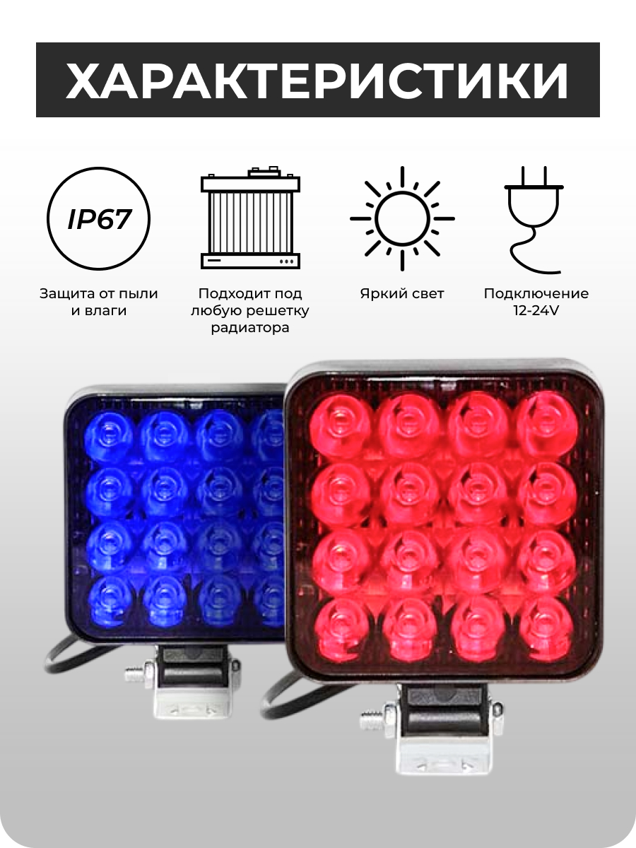 Модель FR16MBR-48W FLOOD — это эффектное и мощное решение для тех, кому необходима максимальная заметность и надежный рабочий свет. Главной особенностью устройства является комбинированное сине-красное свечение (Blue/Red), которое создает яркий контрастный сигнал, мгновенно привлекающий внимание в любых условиях. Такая световая индикация идеально подходит для обозначения спецтехники или создания специфического освещения, обеспечивая достойную видимость даже в самой сложной визуальной обстановке.
