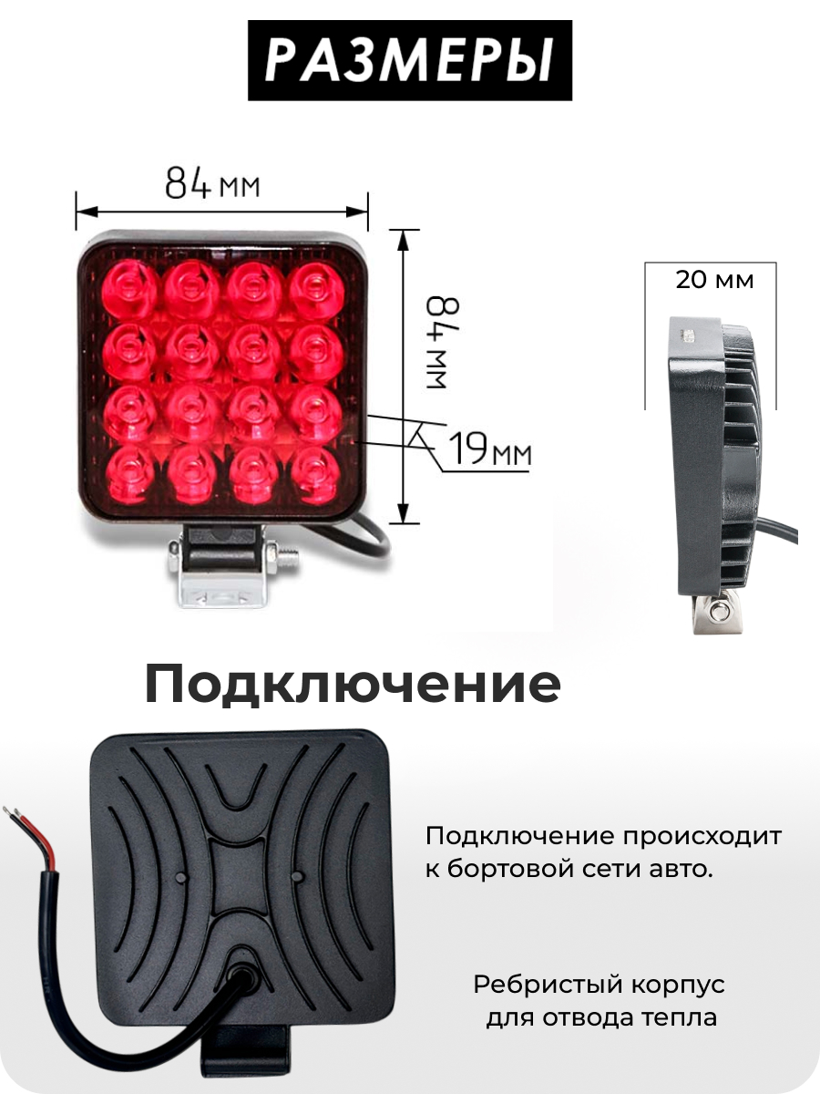 Внутренняя начинка фары впечатляет своей эффективностью: за плотный и яркий поток отвечают 16 современных диодов, выполненных по технологии SMD 3030. Каждый диод мощностью 3 Ватта вносит свой вклад в общую производительность системы, которая в сумме выдает честные 48 Ватт. Благодаря высококачественной линзе из PMMA, свет распределяется под углом 30 градусов, формируя четко направленный и пронзительный луч, способный пробиться сквозь сумерки, туман или плотные осадки.