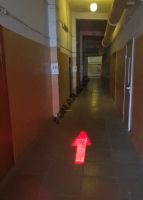 Указатель направления движения складской спецтехники, например вилочных погрузчиков или техники работающей на объекте с повышенной опасностью. Красная стрелка является указателем направления движения и служит как визуальная система безопасности.