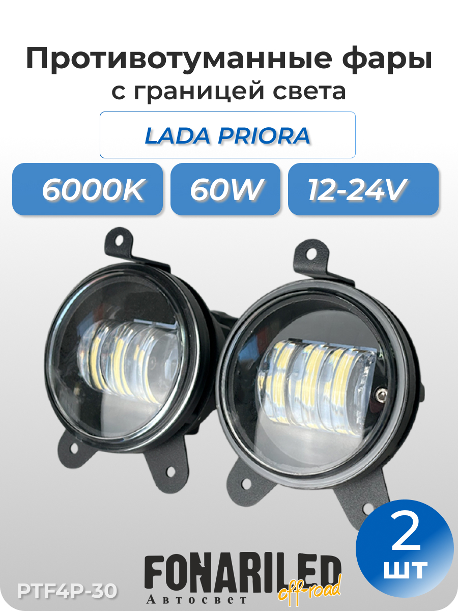 - Противотуманные фары PTF4P-30W flood Lada Priora с границей света