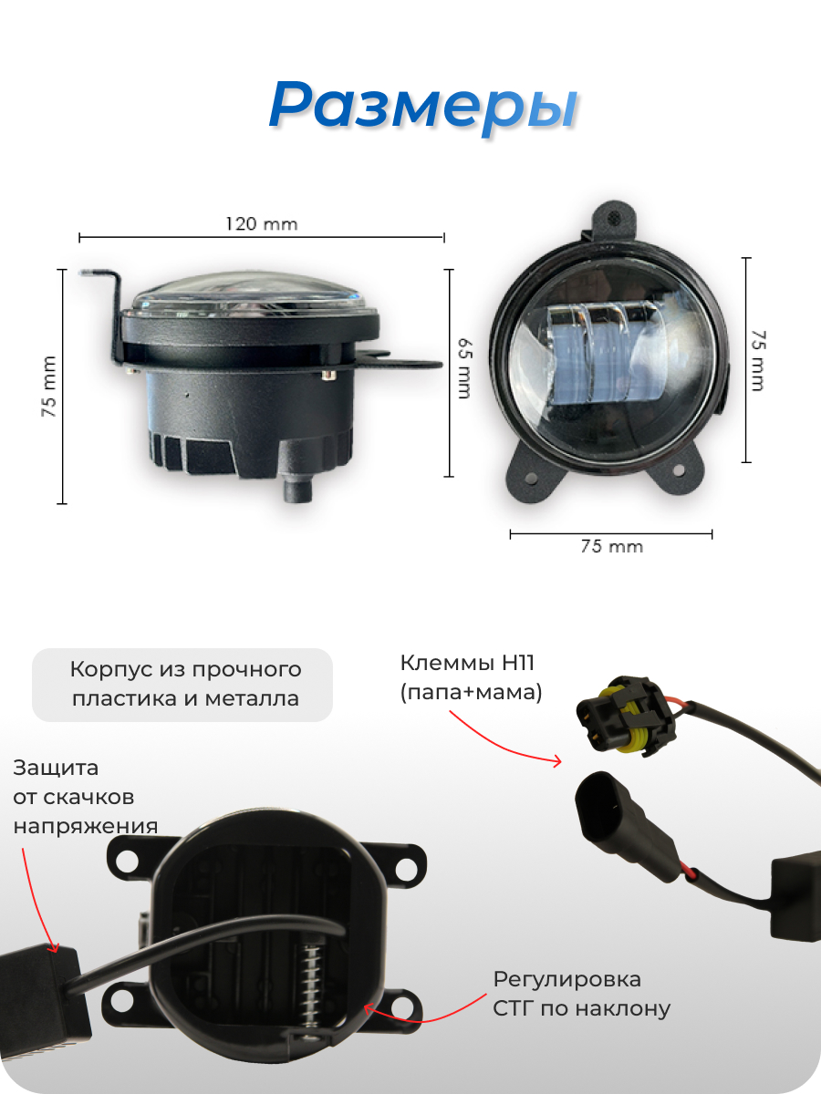 Фары PTF4P-30W рассчитаны на работу в широком диапазоне напряжений от 12 до 24 Вольт, что делает их совместимыми с большинством автомобилей. Их размеры — длина 85 мм (с креплением 110 мм), ширина 85 мм и глубина 100 мм, при этом внешний диаметр около 4 дюймов — позволяют легко интегрировать их в штатные места Lada Priora. В комплекте идет литое алюминиевое крепление, обеспечивающее надежную установку.