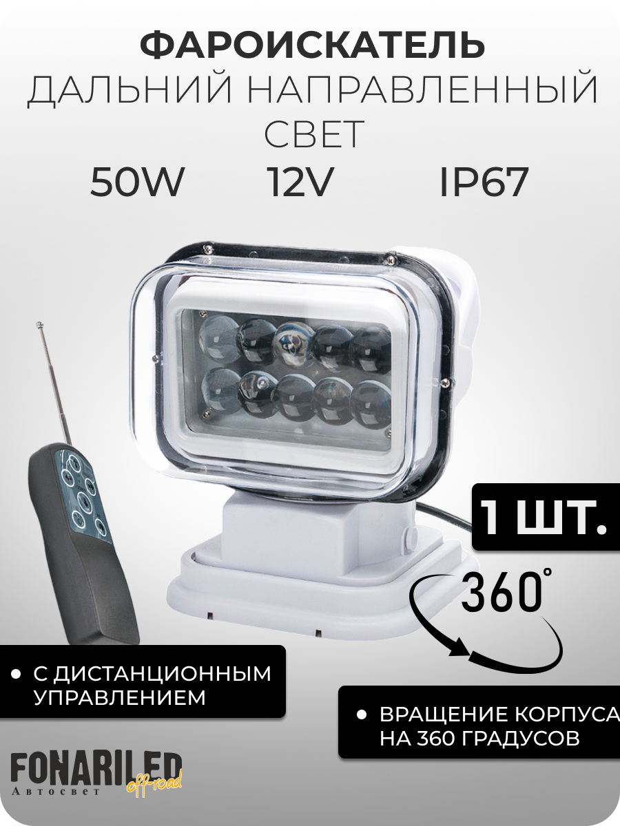 Фароискатель BW4D-50W представляет собой мощный осветительный прибор, предназначенный для формирования интенсивного направленного луча на дальние дистанции. В основе устройства лежат высококачественные светодиоды американской технологии Cree XM-L, которые обеспечивают внушительный световой поток в 4250 Люмен при мощности 50 Ватт. С узким углом света в 30 градусов и цветовой температурой 6000K (холодный белый свет), этот фароискатель гарантирует превосходную видимость объектов на значительном удалении, что делает его незаменимым инструментом для поисковых операций, охоты и навигации в темное время суток.