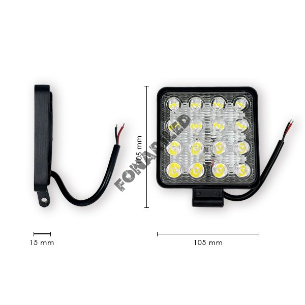 Размеры данной светодиодной фары составляют 105 мм в длину, ширину и всего лишь 15 мм в глубину, что делает её крайне компактной и удобной для установки на различные виды техники. Стоит отметить, что с учётом крепления общая длина увеличивается до 135 мм, однако этот нюанс никак не влияет на общую эргономичность конструкции. Фара обладает оптимальными габаритами, гармонично вписываясь в пространство, предназначенное для дополнительного освещения.