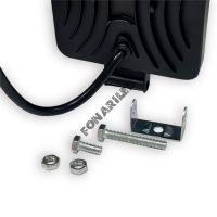 Фара изготовлена с применением надежных технологий производства, включая защиту уровня IP67, выдерживая температуру от -40°С до +80°С и стойко сопротивляясь внешним воздействиям, таким как грязь, пыль и дождь. Для повышения надежности использован прочный литой алюминиевый корпус черного матового цвета и надежное монтажное крепление с нержавеющей поверхностью.