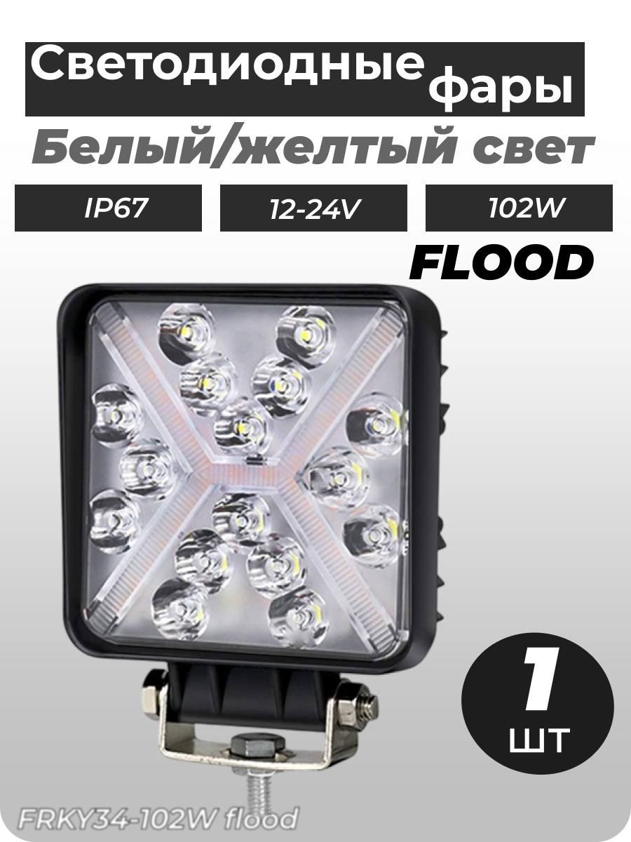 - Светодиодная фара FRKY34-102W flood белый/желтый свет, противотуманный
