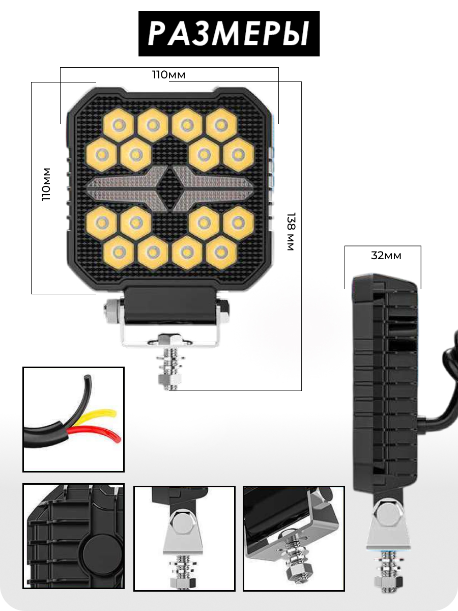 Помимо основного рабочего света, фара обладает функцией стробоскопа, что добавляет ей универсальности. Доступны два цвета свечения: классический белый и янтарный (оранжевый), который часто используется для привлечения внимания или в качестве сигнального света. Это делает FR16SWY-40W WORKING незаменимой для различных видов спецтехники, где требуется не только освещение, но и возможность подачи сигналов.