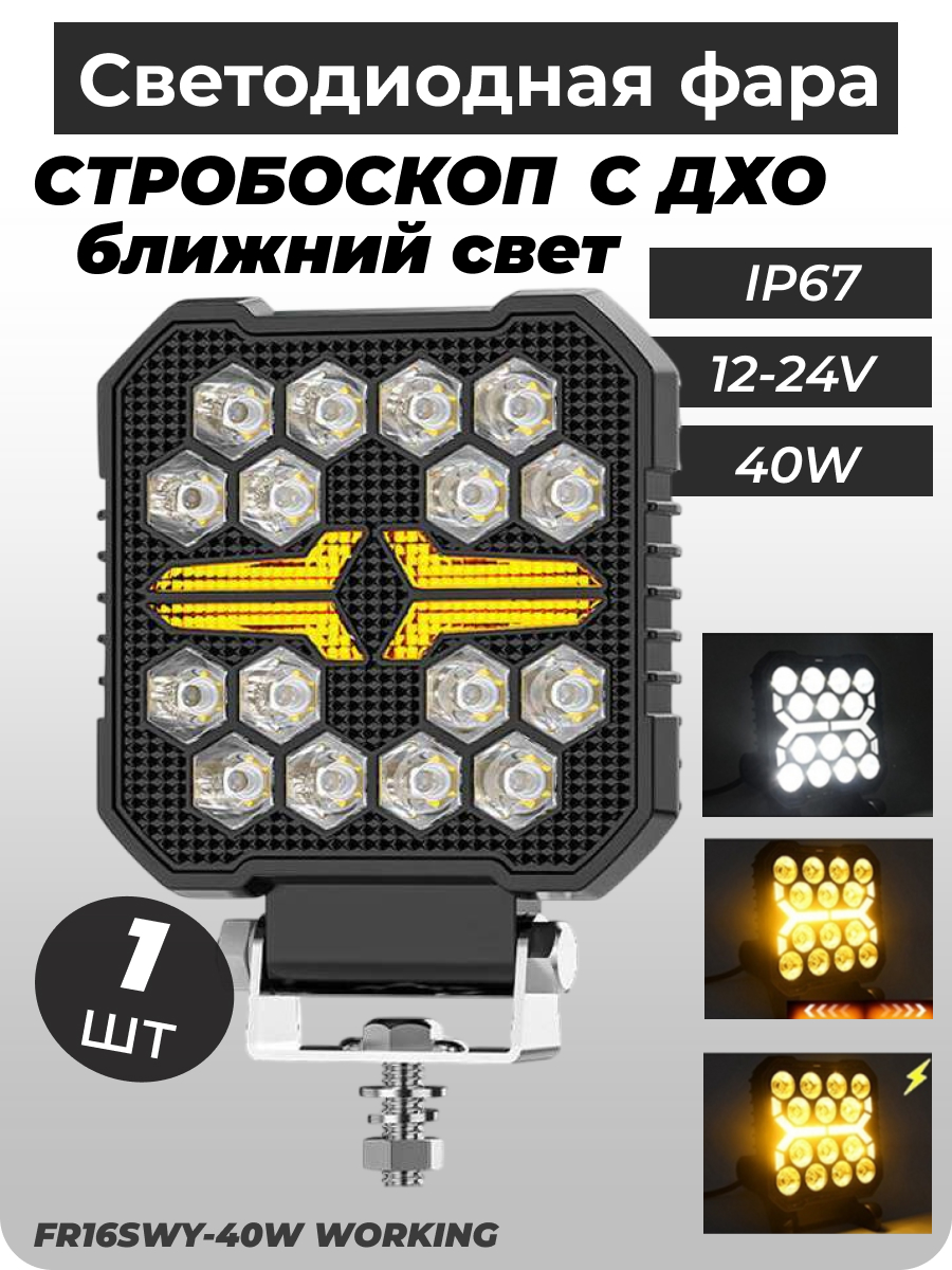 - Светодиодная фара стробоскоп FR16SWY-40W WORKING рабочий свет