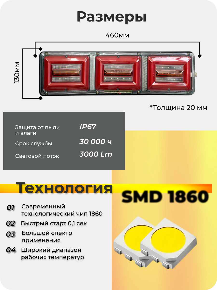 Представляем высокоэффективный светодиодный элемент длиной 46 см, разработанный для улучшения безопасности и видимости транспортных средств. Он оптимизирован для работы от бортовой сети 24 Вольт, используя современные диоды по технологии SMD 1860. Особенностью является функция "бегающего поворотника", которая динамично указывает направление поворота, значительно повышая заметность на дороге. Гибкий и прочный корпус из ПВХ с металлическими элементами обеспечивает долговечность и универсальность установки, а общие габариты составляют 460 мм в длину, 130 мм в ширину и 20 мм в высоту при весе брутто 1 кг.
