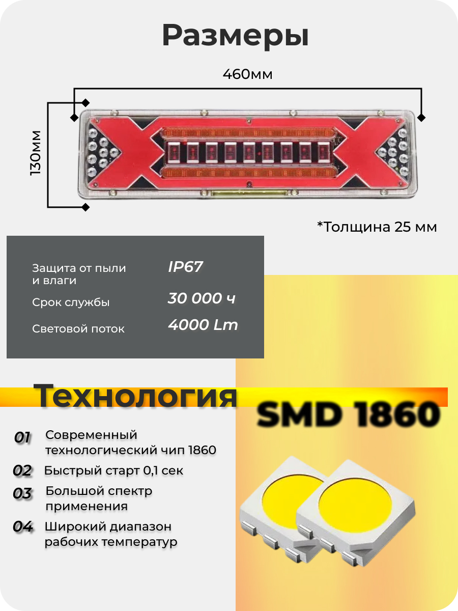 Представляем высокоэффективный светодиодный элемент длиной 46 см, разработанный для улучшения безопасности и видимости транспортных средств. Обладая мощностью 45 Ватт и световым потоком в 4000 люмен, он гарантирует яркое и четкое освещение. Особенностью является функция "бегающего поворотника", которая динамично указывает направление поворота, значительно повышая заметность на дороге. В основе устройства лежат современные диоды по технологии SMD 1860, работающие от бортовой сети 24 Вольт, а его гибкий и прочный корпус из ПВХ с металлическими элементами обеспечивает долговечность и универсальность установки.