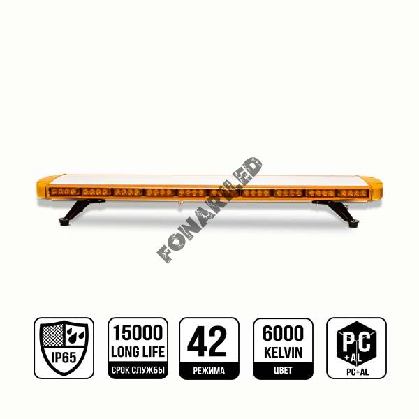 Проблесковая светодиодная балка ПБО-1200 оснащена 88 светодиодами Epistar, каждый мощностью по 1 Ватту. Имеет 42 режима вспышки.