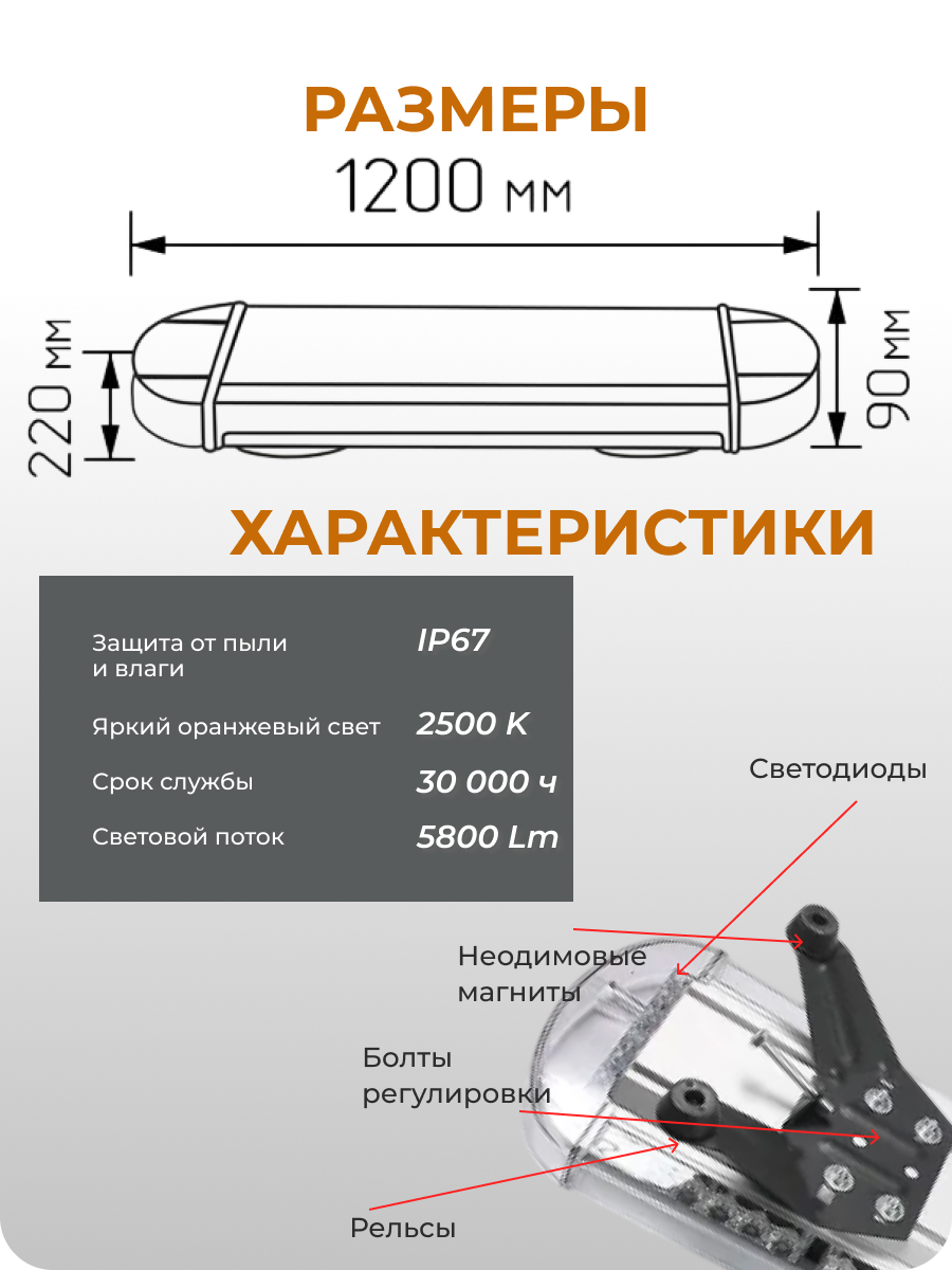 Проблесковая светодиодная балка ПБО-1200Б представляет собой полноразмерное светосигнальное устройство профессионального уровня, предназначенное для четкой визуальной индикации спецтехники на дороге. Обладая внушительной длиной 1200 мм при ширине 220 мм, этот прибор идеально подходит для установки на крыши крупногабаритных автомобилей, эвакуаторов и дорожных машин. Продуманная комбинация материалов — прочного алюминиевого сплава в основании и ударостойкого поликарбоната в верхней части — обеспечивает конструкции необходимую жесткость и долговечность, а низкий профиль высотой всего 90 мм способствует сохранению аэродинамических характеристик транспортного средства.