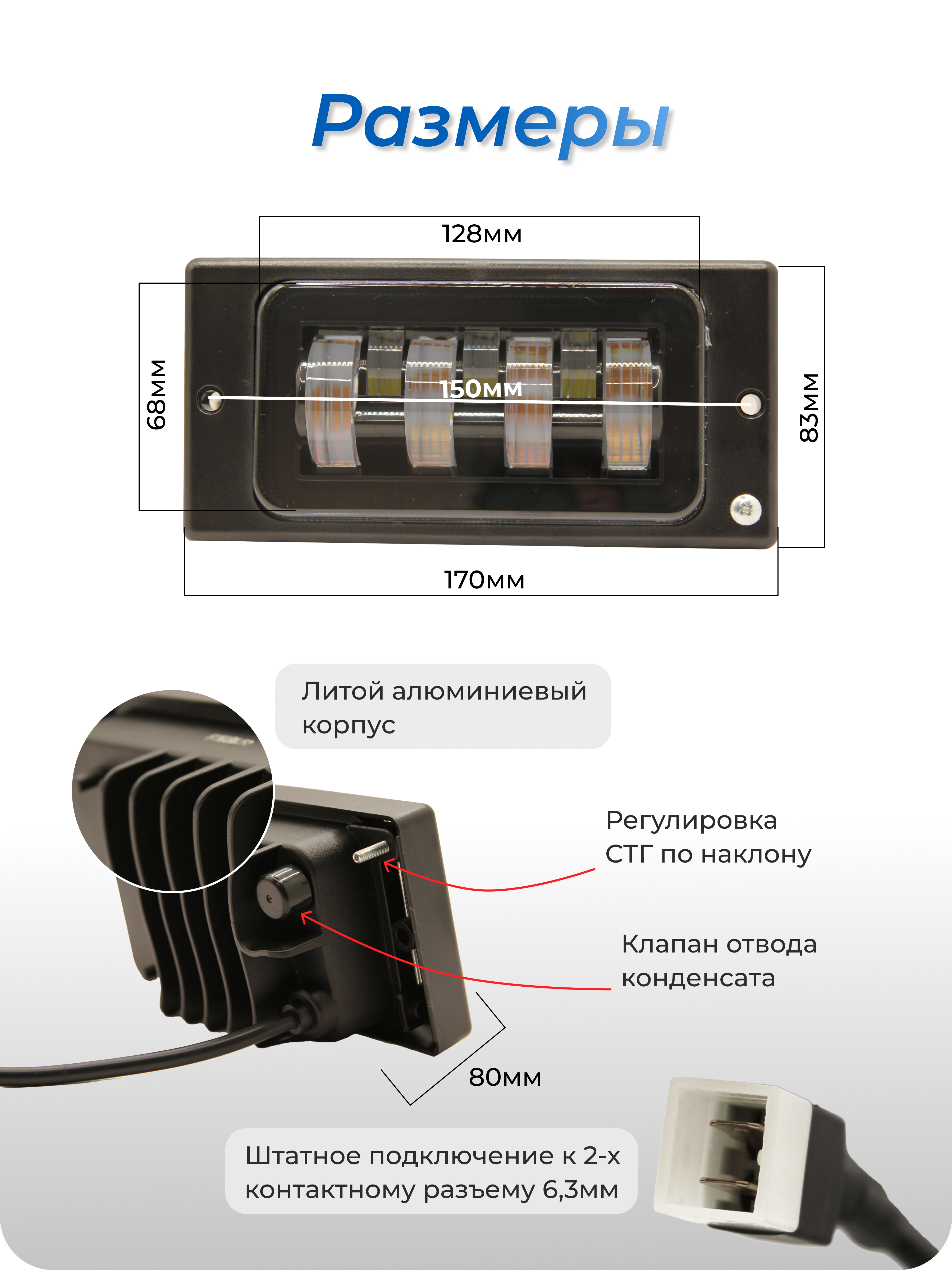Фары имеют размер 170мм × 83мм. Ширина фары 80мм.