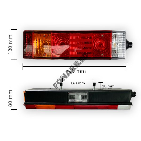 Задний правый фонарь FS-6046R с галогенными лампами подходит для установки на различные модели грузовых автомобилей KAMAZ, SHACMAN и другие грузовики с напряжением 24 Вольта.